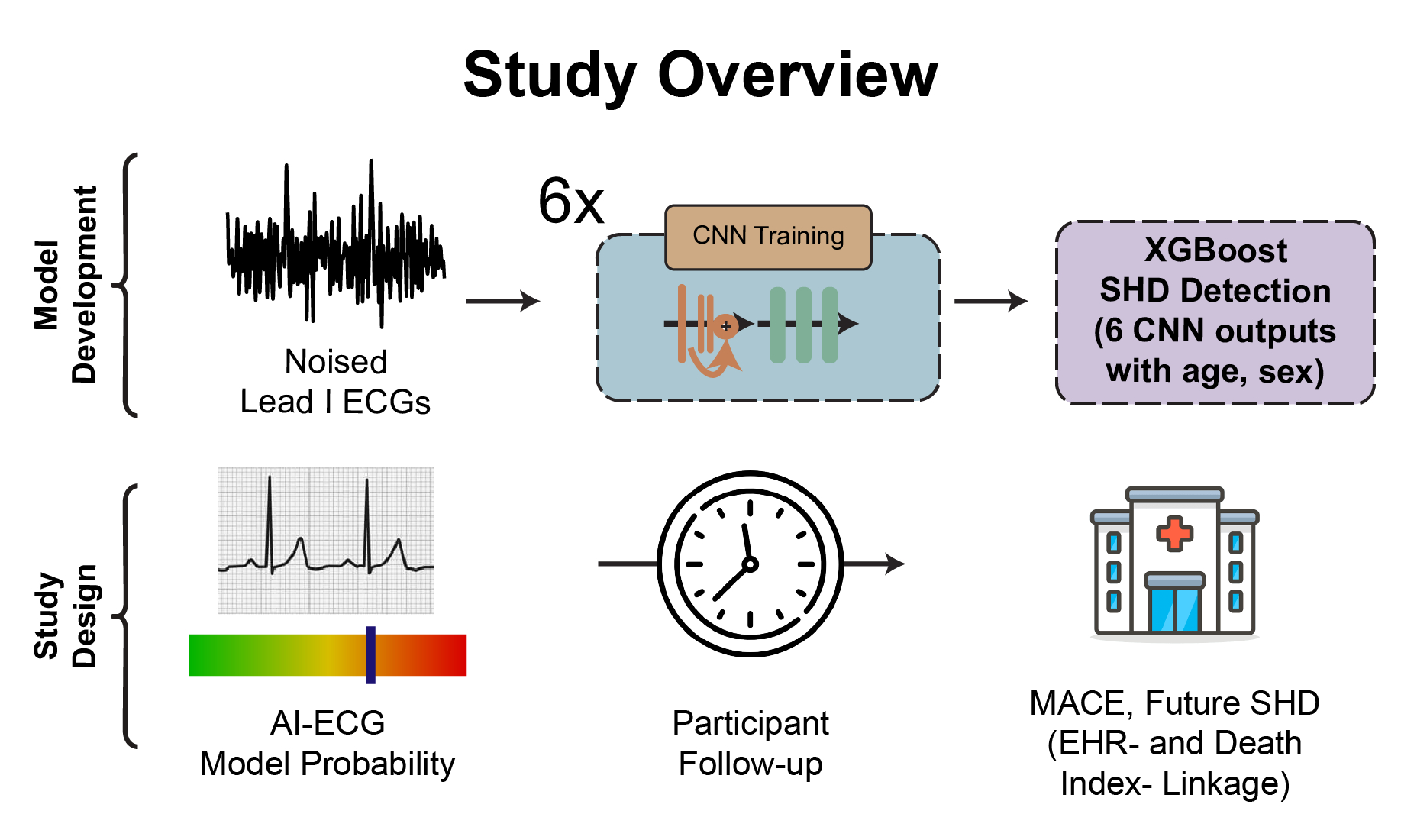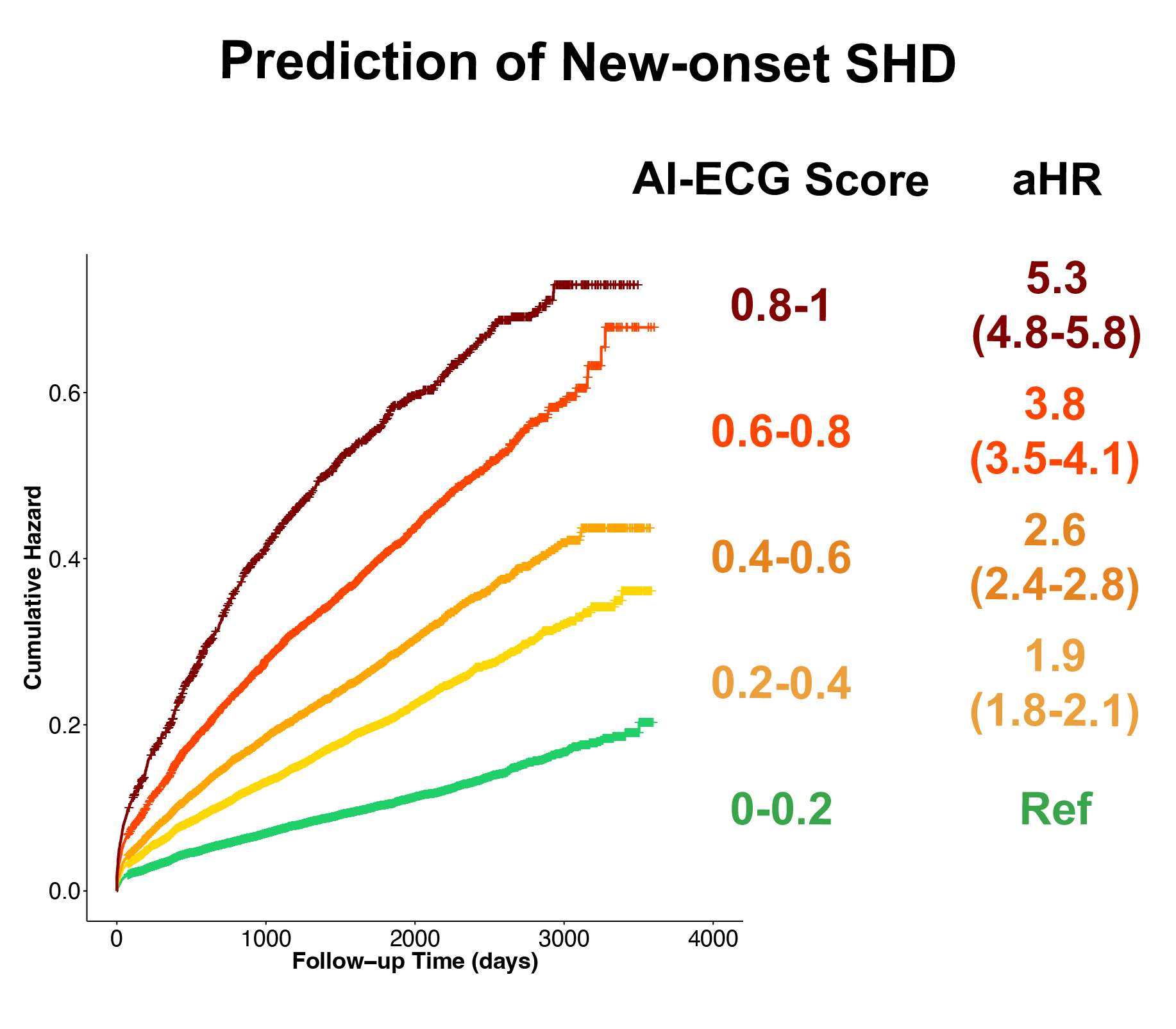Conclusions: In geographically and clinically distinct cohorts, a noise-adapted AI model with lead I ECGs as the only input defined the risk of MACE and new-onset SHD. This represents a scalable strategy that can use portable and wearable devices with ECG capabilities for cardiovascular risk stratification in the community.