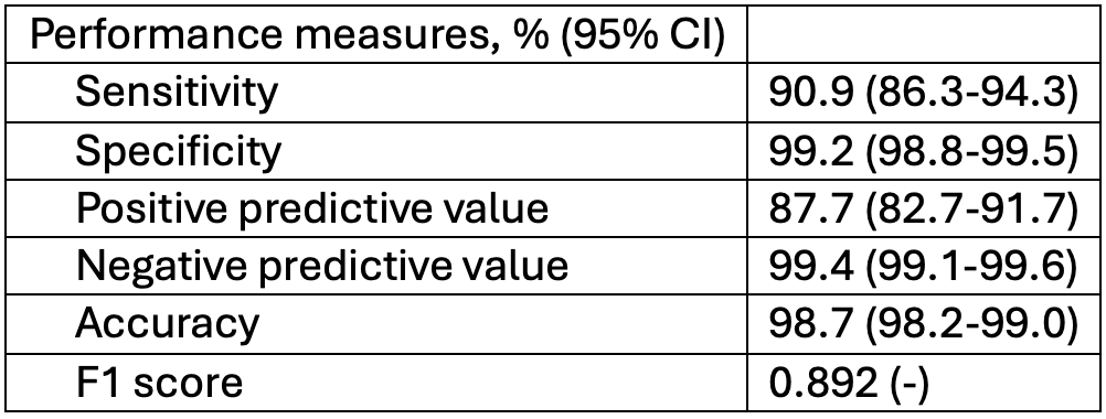 Conclusion: Our LLM-based tool was able to identify stroke thrombolysis contraindications from synthetic clinical notes with very high sensitivity and PPV. We plan to validate the effectiveness of this tool in enabling faster and safer acute stroke thrombolysis decision-making with future prospective studies, with the eventual goal of acute stroke workflow integration.